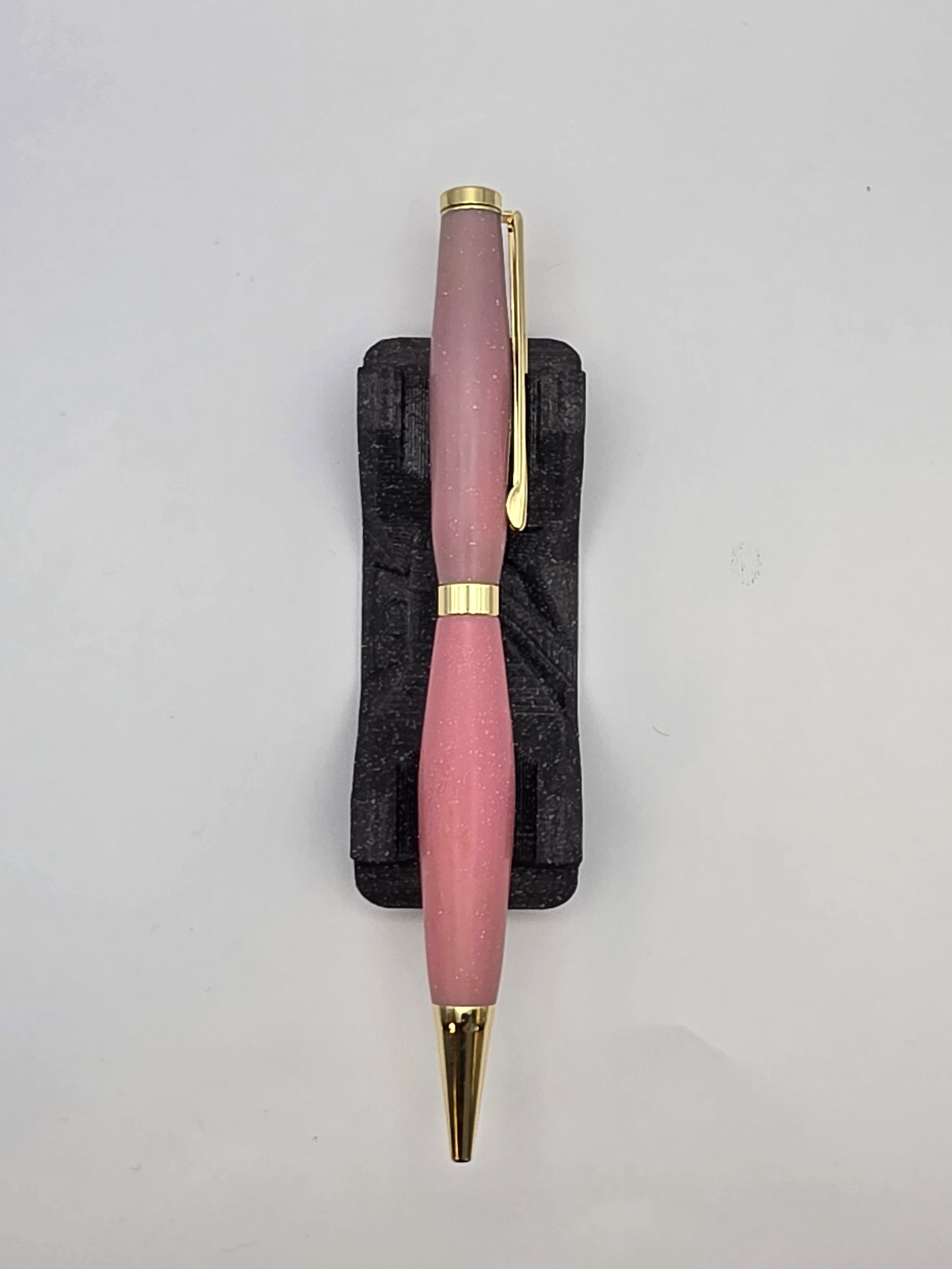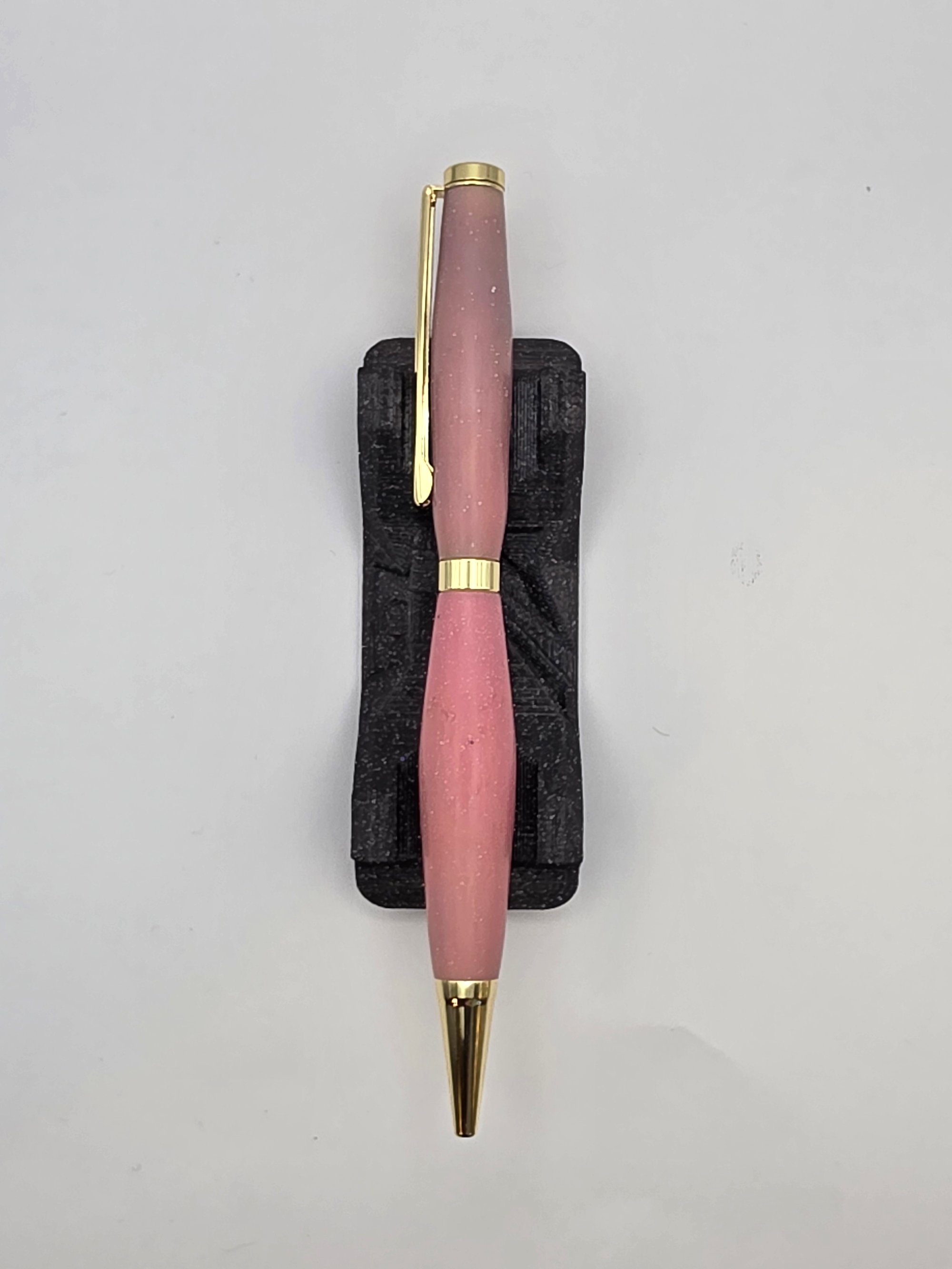 Beautiful pink resin pen with gold accents. Fits in the hand comfortably! Perfect for everyday use or to give as a unique gift.
